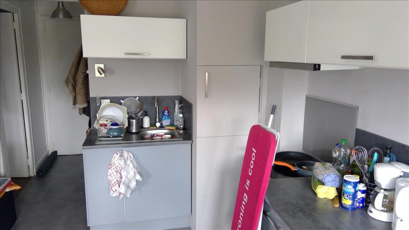 Appartement composé d'une entrée sur couloir, un coin nuit avec placard, une salle d'eau avec sanitaires, une cuisine aménagée ouverte sur le séjour.